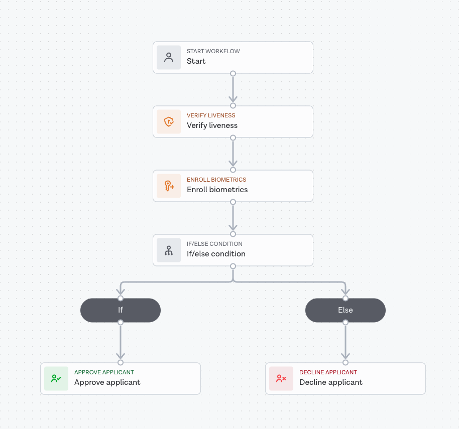 Below you will find an example template available in the Studio Workflow Builder running a Liveness Verification: