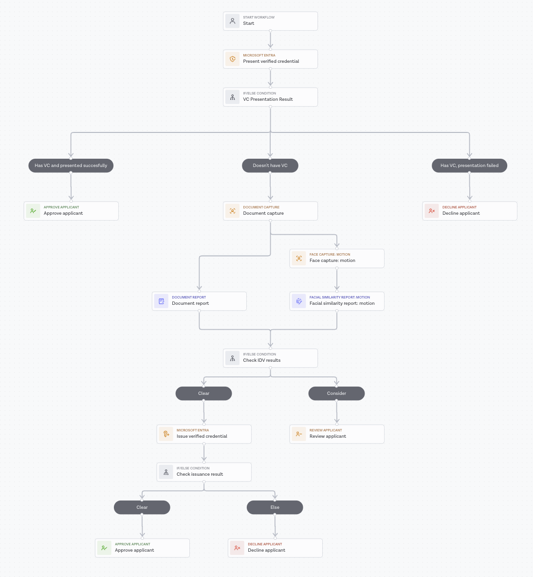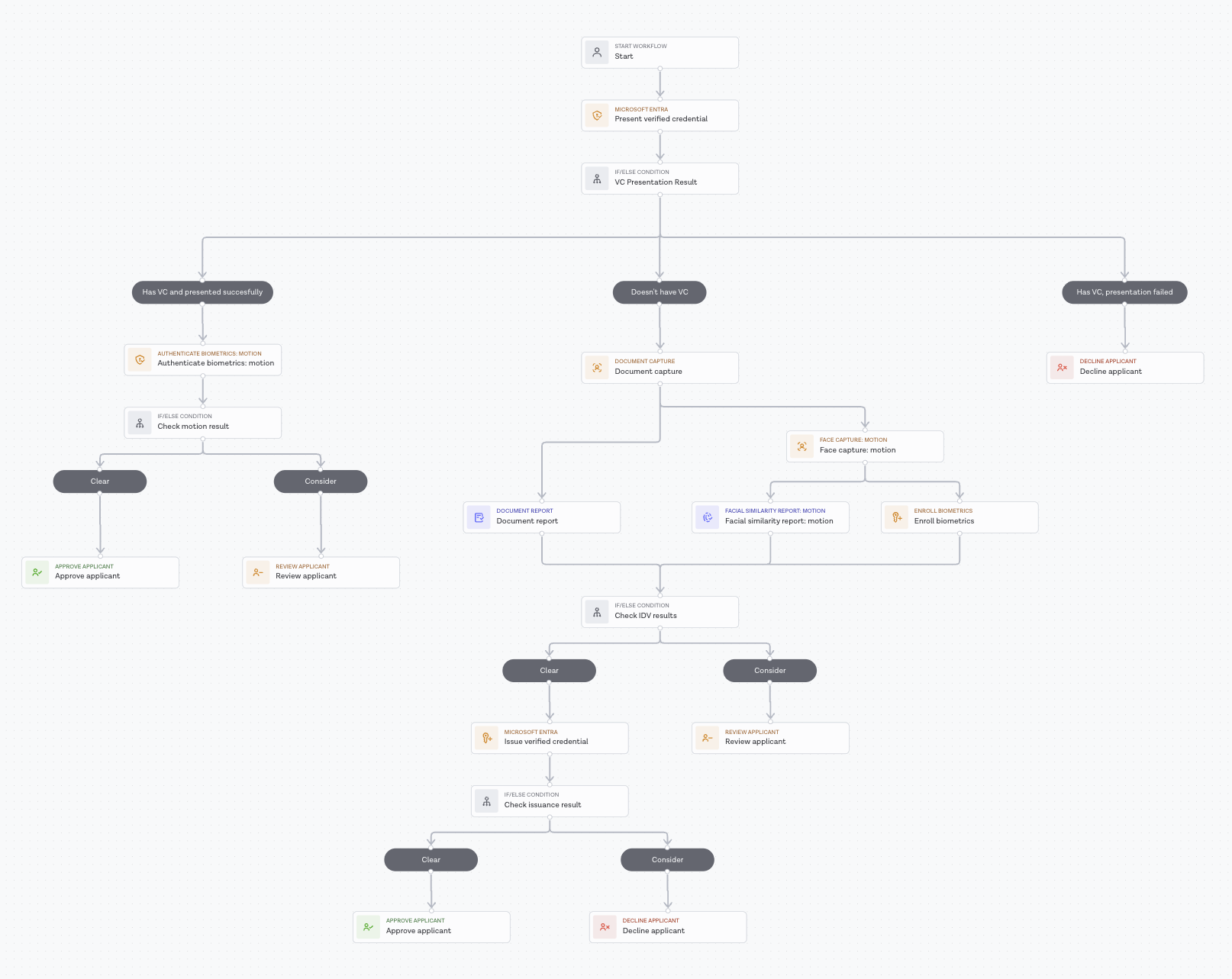 Integrating Microsoft Entra Verified ID through Workflow Studio offers a robust solution for the issuance and validation of verified credentials. Leveraging digital verified credentials allows you to streamline identity verification journeys with a seamless user experience, while still maintaining the highest level of fraud prevention and security.