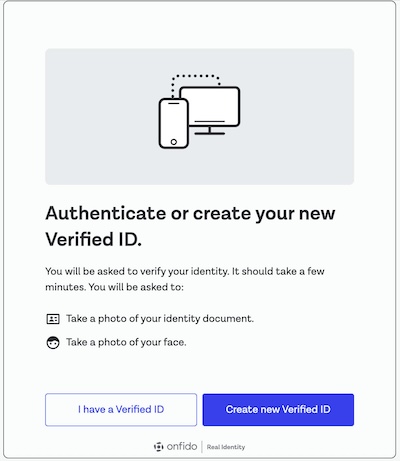 If the user presses the I have a Verified ID button, they will be prompted to present it. If the user presses the Create new Verified ID button, the Present verified credential task will return a consider result.