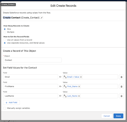You will not need to create custom Salesforce fields if your object selection is Contact or Person Account.