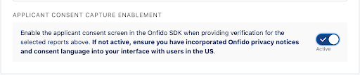 If enabled, there will be an added step within the Onfido SDK asking for consent.