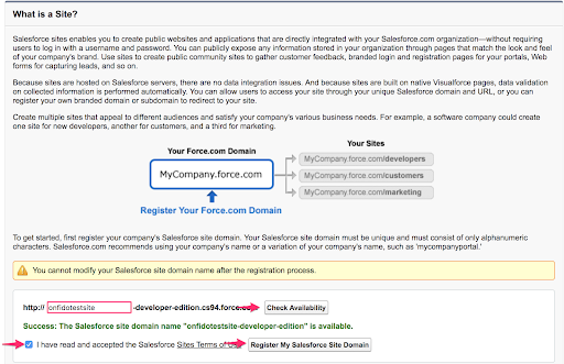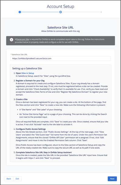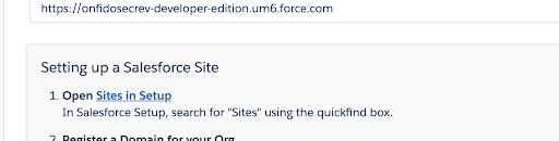For additional information and detailed instructions, see the Setup the Salesforce Site URL section.