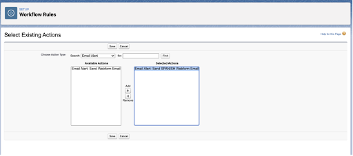 - Click on your newly created rule. In this example the "Send Spanish Webform Email".