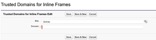 - Scroll down and click Add Domain next to "Trusted Domains for Inline Frames". Leave the "Site" pre-populated and paste the domain of your Digital Experience
