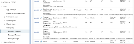 - Navigate to Salesforce Setup > Apps > Packaging > Installed Packages.