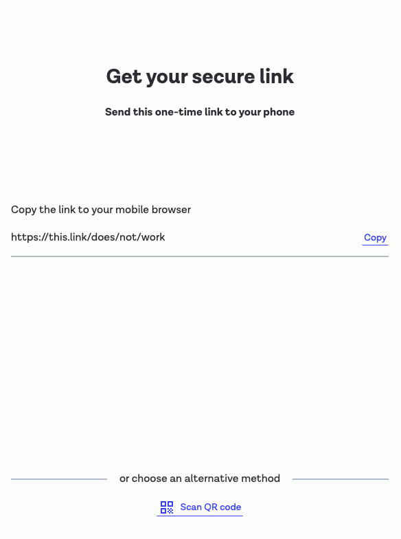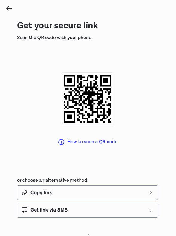| Cross-device (desktop) QR code screen | ![]() | ![]() |
