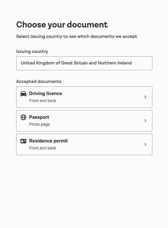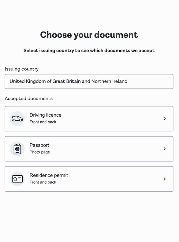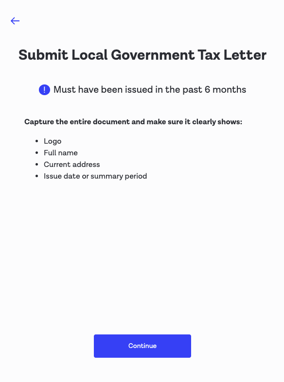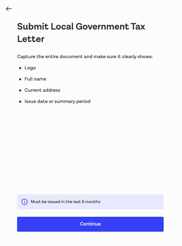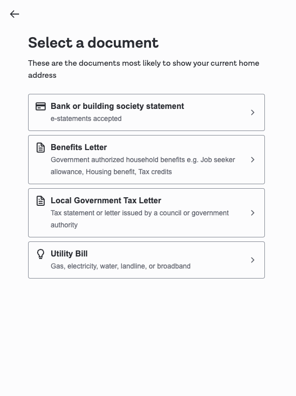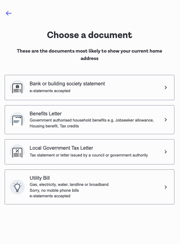 | Proof of Address selection screen | ![]() | ![]() |